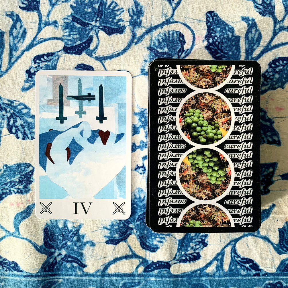 The Careful Tarot deck is a bridge-sized deck named and numbered according to the Rider-Waite-Smith system, including both the major and minor Arcana. The deck will arrive shrink-wrapped in plastic. You will also receive a digital guide to the deck, which includes notes specific to each card.